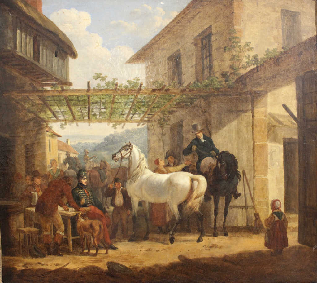 Halte de cavaliers sous une tonnelle