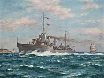 The Chilean Navy's destroyer Serrano in coastal waters