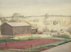 Rural landscape with farm buildings