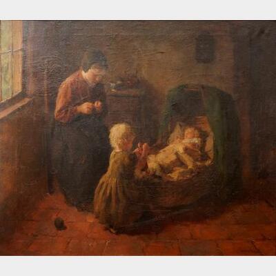 Bernard Pothast (Dutch 1882-1966)- Interior Scene with Mother, Baby and Doll- oil on canvas, signed B. Pothast lower right. 25 x 28 1/2'' | |