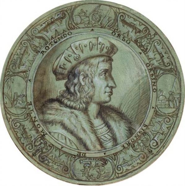 Portrait en médaillon d'Orso Orsini, vu de profil vers la droite