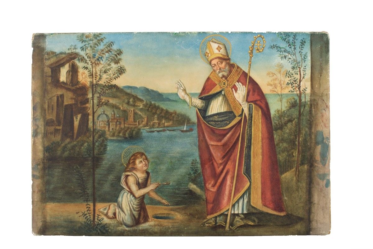| Sant'Agostino sulla riva con il Bambin Gesù che svuota il mare con un cucchiaio. | |