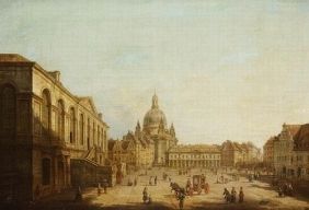 Nach - Der Neumarkt in Dresden vom Jüdenhof aus. Um 1800.