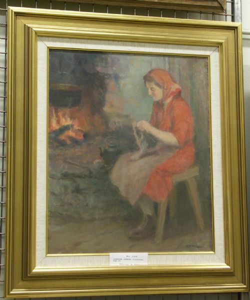 Genrescen med handarbetande kvinna