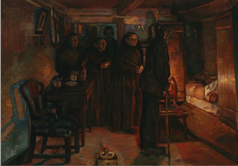 At a deathbed.