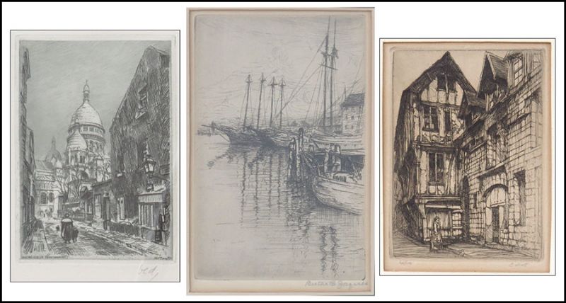 ENGRAVING DEPICTING BOATS AT THE DOCK.