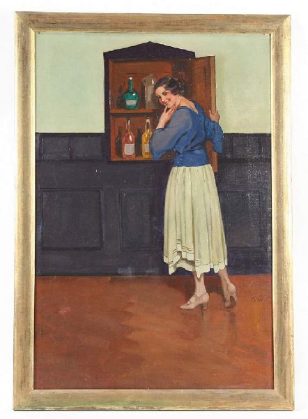 enligt uppgift a tergo: Kvinna vid drinksskåpet