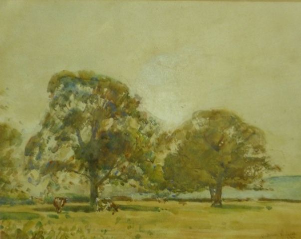 Cows under mature trees in leaf