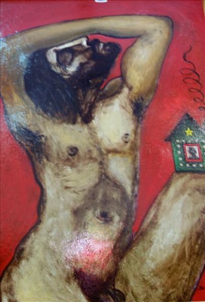 | A sad man with a tiny house on his knee juggling with the fate of his home | |