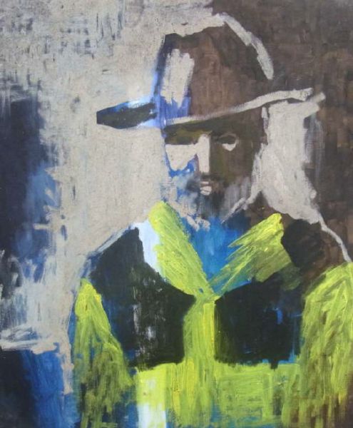 Head and shoulders portrait of a man in yellow jacket and hat