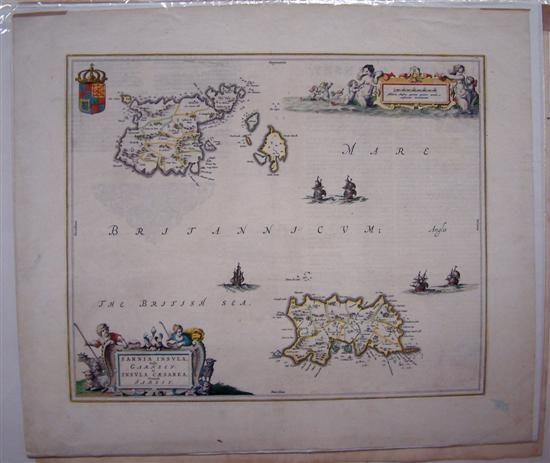 | Map of Sarnia Insula vulgo Garnsey et Insula Caesarea vernacule Jarsey c.1646, 1st edition, French text | |