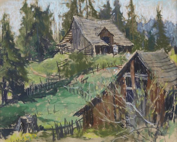 Two old ranch barns; Noyo (a harbor scene) (Group of 2)