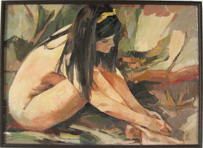 A seated female nude.
