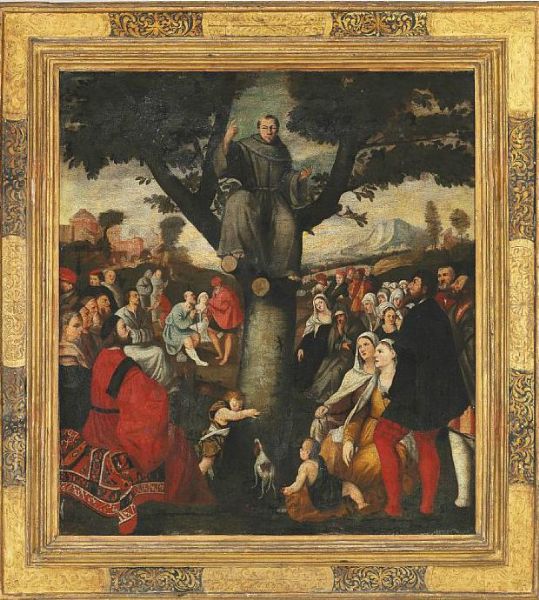 | Saint Anthony of Padua is preaching sitting in a walnut tree | |