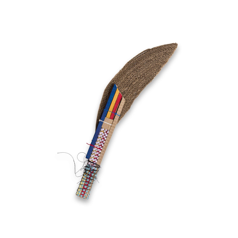 | Cardboard , thread, acrylic paint on punched canvas and string | |
