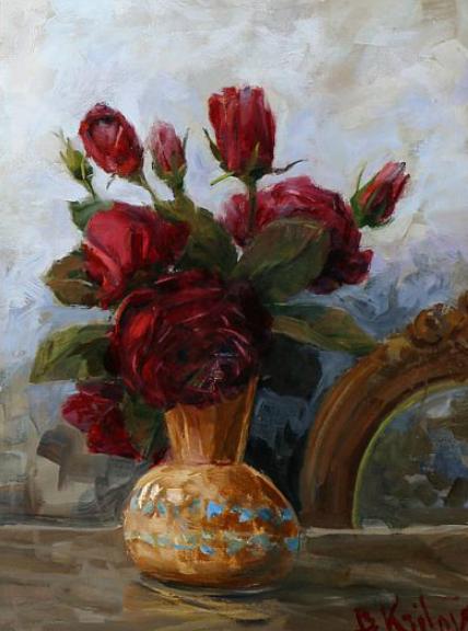 | A vase with red roses | |