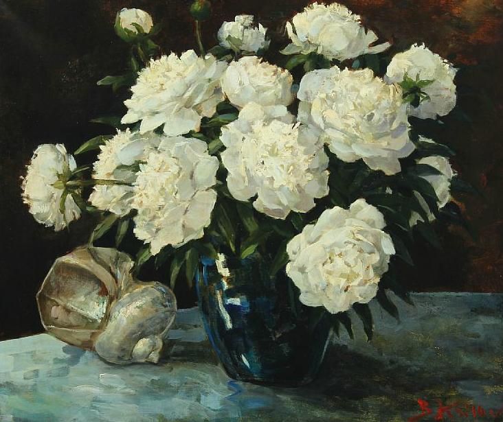 Still life with white paeonias