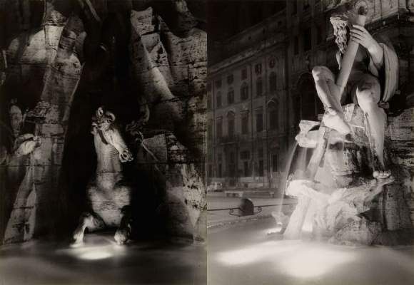 La fontaine des quatre fleuves de nuit, Place Navone, Rome, 1936