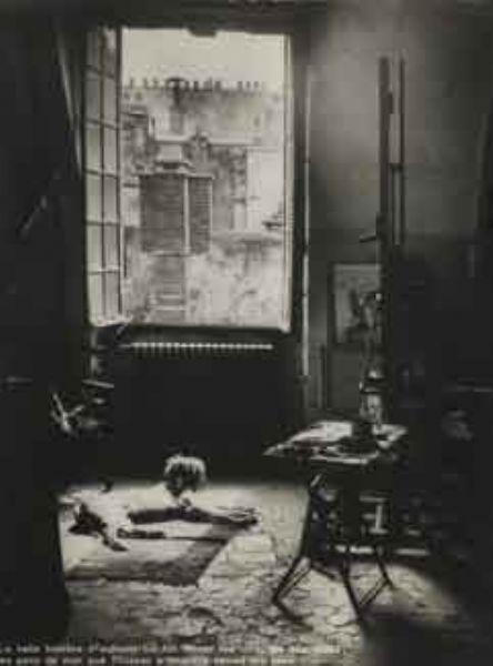 L’atelier de peinture de Picasso, rue des Grands-Augustins, avec son chien Kazbek