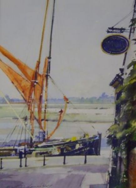 A sailing vessel moored at a quayside on the Norfolk Broads