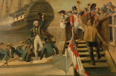 Admiral Lord Nelson waving to the crowd on the Dockside