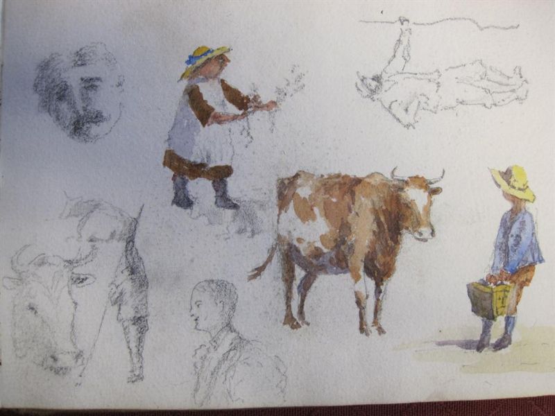 Pencil and watercolour