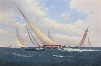 | Astra cross-tacking in a stiff breeze with Cambria, Britannia and Candida behind, 1931 | |