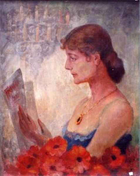 Halbporträt, w. Ruth mit Blumen