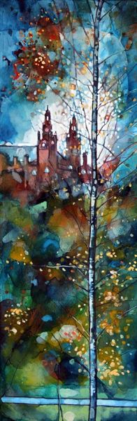 KELVINGROVE TOWERS THROUGH THE BIRCH LEAVES