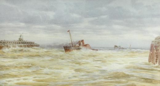 A Steam Tug Towing in a Derelict, Gorleston Harbour, near Cromer, Norfolk