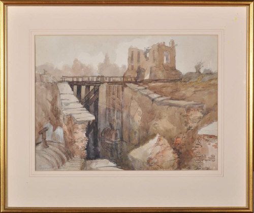 A SHELLED FORTIFICATION NEAR A WRECKED CANAL GATE