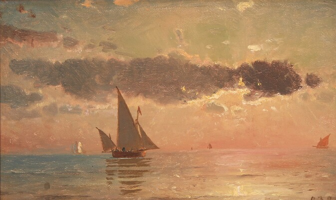 Seascape with sailing ships at eventide