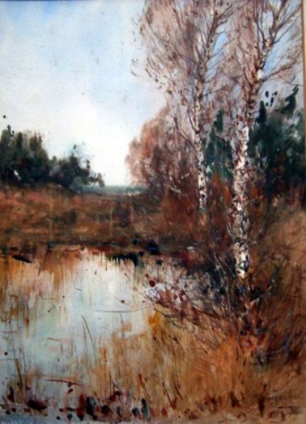 Birch trees beside a pond