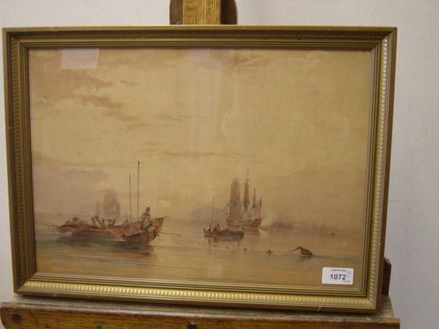 | FISHING BOATS AND FRIGATES IN COASTAL WATERS AT EVENING | |