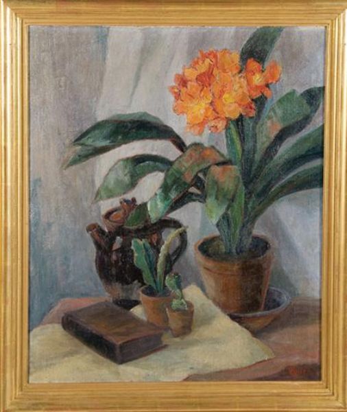 Still Life with Teapot, Potted Geraniums and a Cactus