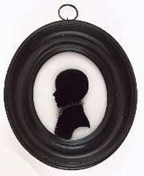 | Painting A silhouette of a young Boy called Richard Wigram, profile to the left, wearing suit with frilled collar, oval | |