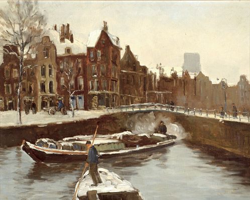 | De Delftsevaart met op de achtergrond de Sint-Laurenskerk te Rotterdam in de winter | |