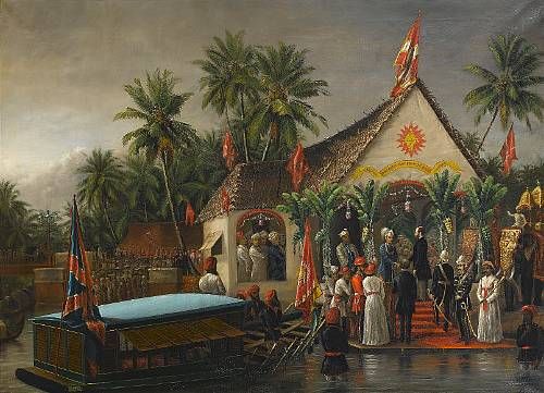 | The Maharaja of Travancore and his younger brother welcoming Richard Temple-Grenville, 3rd Duke of Buckingham and Chandos, Gover | |
