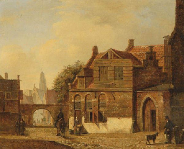 Stadsgezicht met figuren