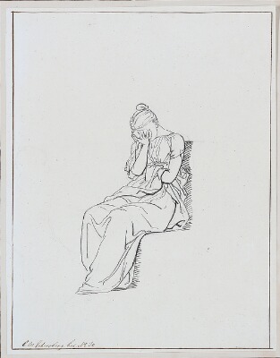 “En sørgende kvinde”. A Mourning Woman. Verso a figure composition. 1806. Unsigned. Inscribed C. W. Eckersberg Cat. No. 30. Drawing ink and pencil on paper. Sheet size 231×180 mm. | |