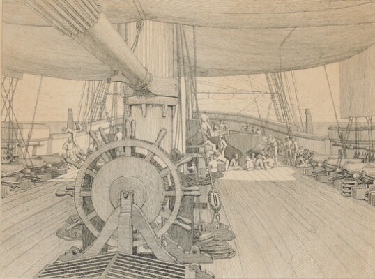 Dækket af et Orlogsskib seet forefter