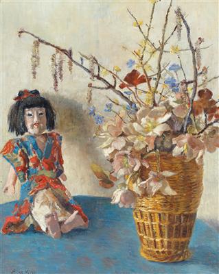 | Japanese Doll with Bouquet of Spring Flowers | |