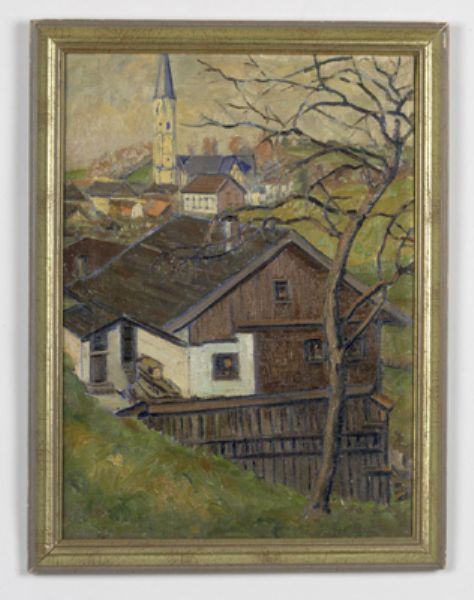 Blick ins Dorf, Ritzsignatur Camillo Kurtz