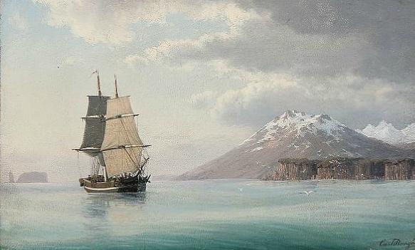 | A sailing ship off the Icelandic north coast | |