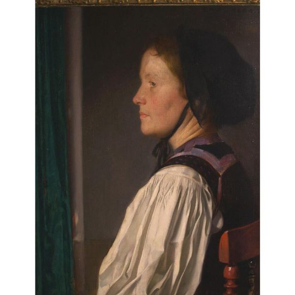Portrait of a Young Woman in a Dark Blue Bonnet