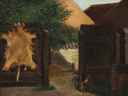 A courtyard with chicken