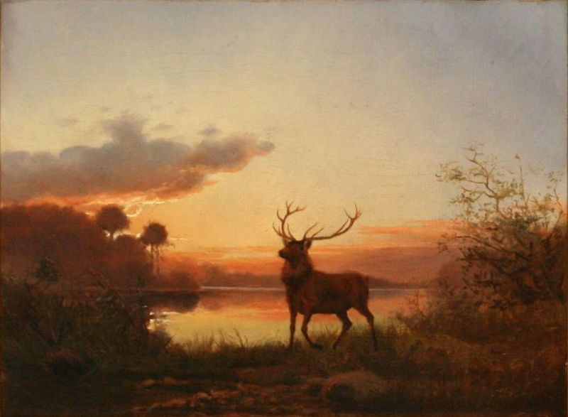 Evening landscape with a stag.