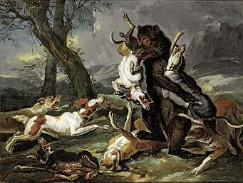 Jagdhunde mit gestelltem Bären