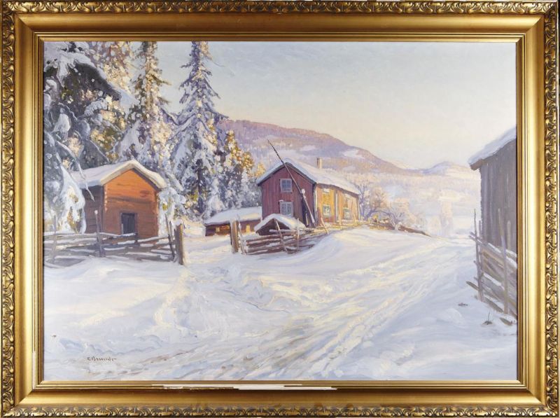 Gårdsmotiv i vinterskrud