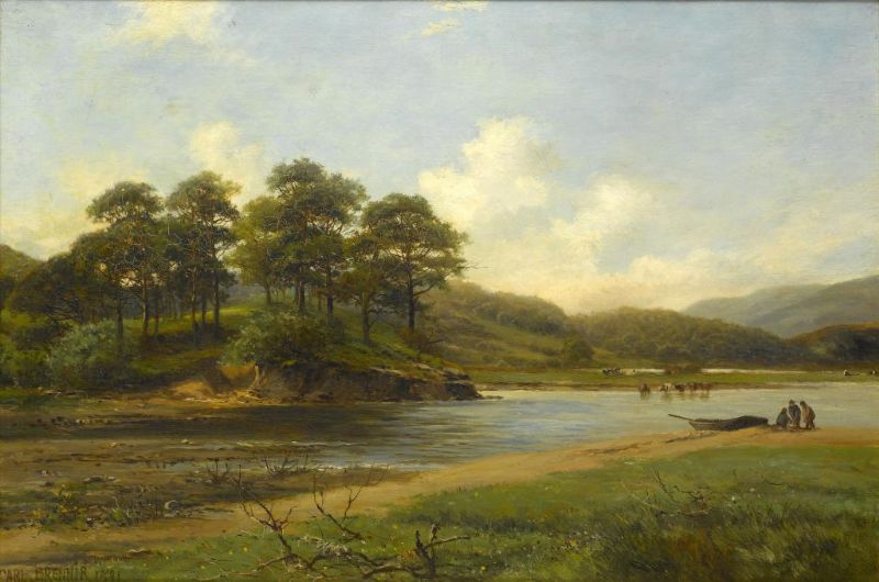 RIVER LANDSCAPE WITH FIGURES AND LIVESTOCK
